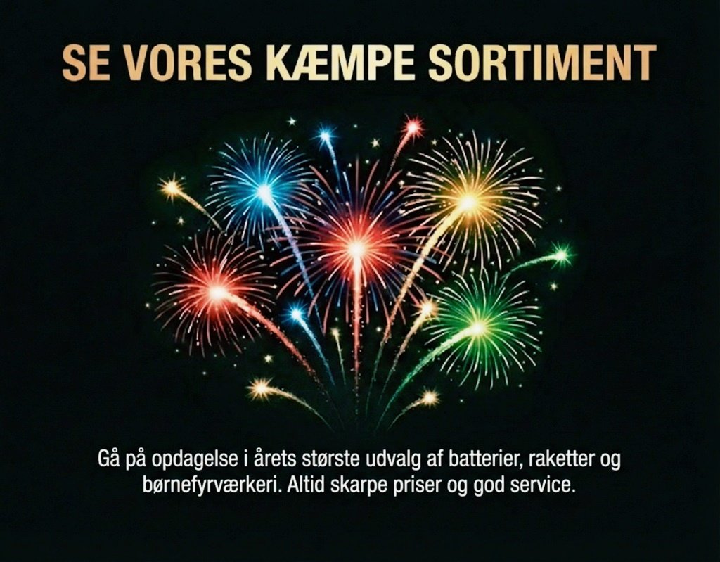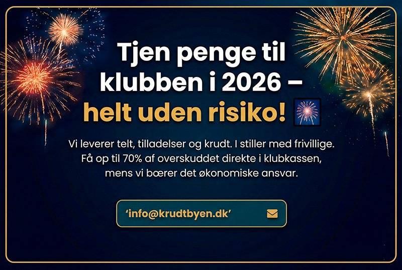 Vi brænder for fyrværkeri og sikrer dig en flot aften uden overpris. Når du køber dit krudt hos os, går overskuddet direkte til de lokale foreninger. Det har vi gjort i 15 år.